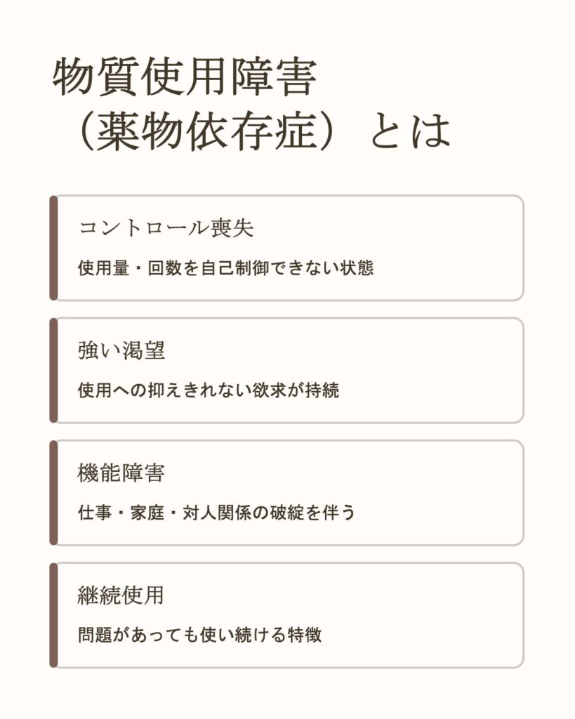 - コントロール困難:使用量・回数・期間を自分で制御できない