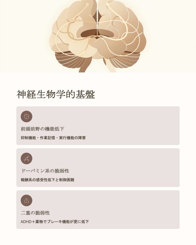 - ドーパミン・ノルアドレナリン系の脆弱さ