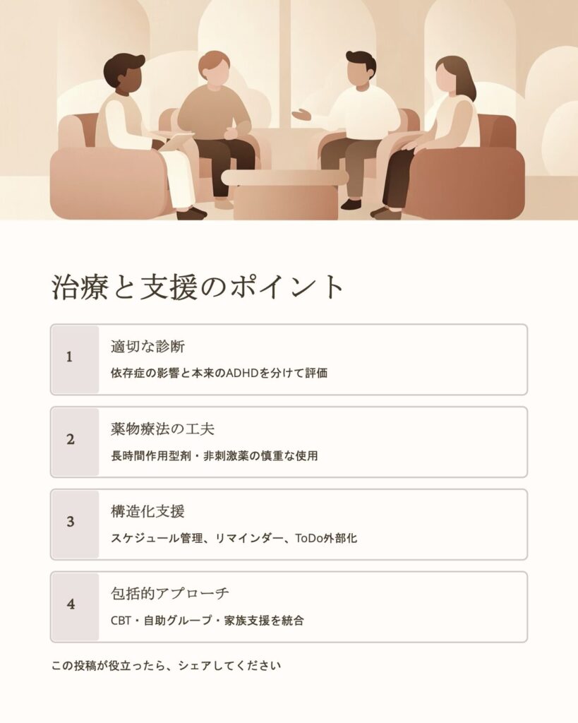 - 生活構造・再発予防・家族支援を、ADHD 特性に合わせて設計する