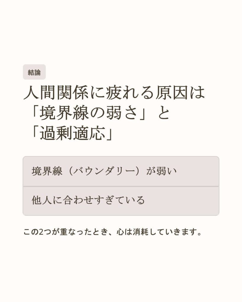 結論:人間関係に疲れる原因は「境界線の弱さ」と「過剰適応」です