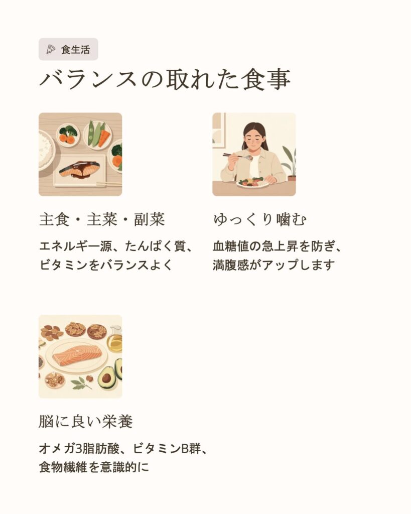 食事は「体を作る材料」であり、脳の働きや感情調整にも直結します。