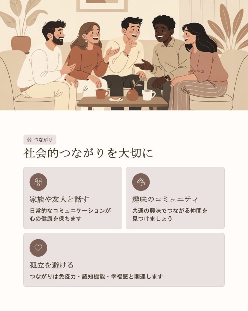 → つながりは免疫力・認知機能・幸福感と関連します。