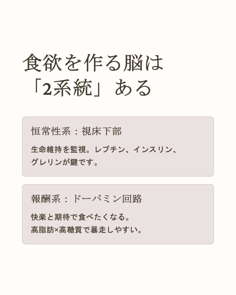 1) 食欲を作る脳は「2系統」ある