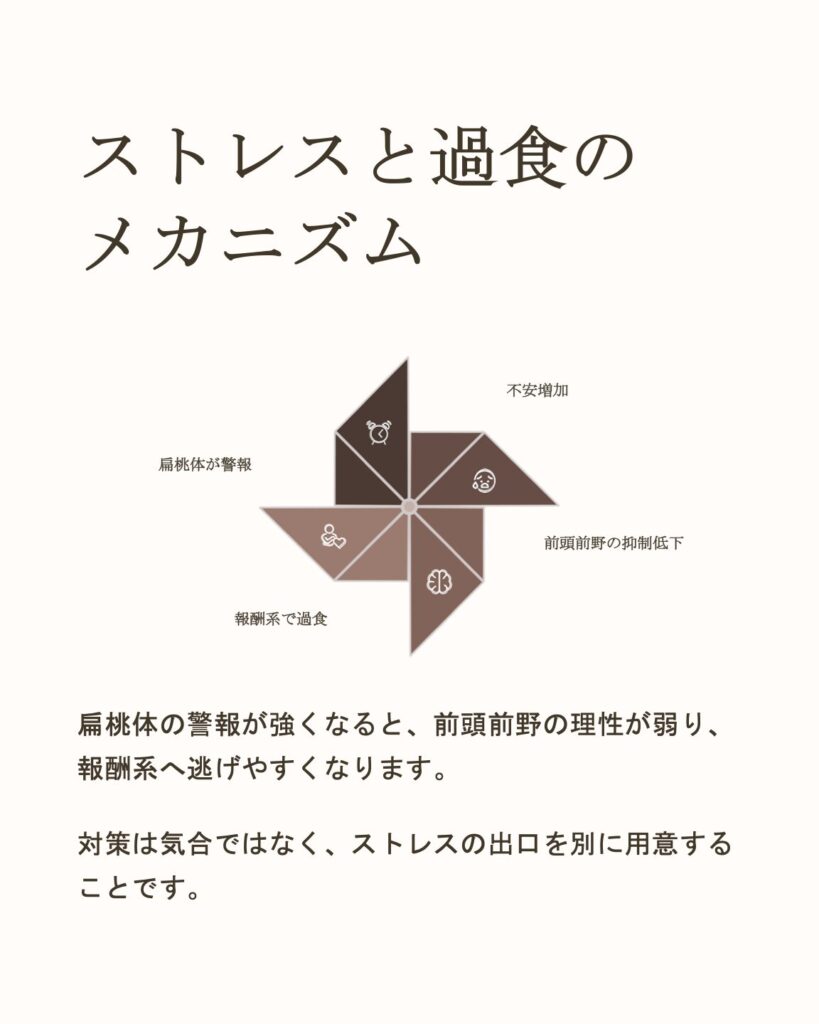 → **報酬系(甘い・脂っこい)**へ逃げやすい