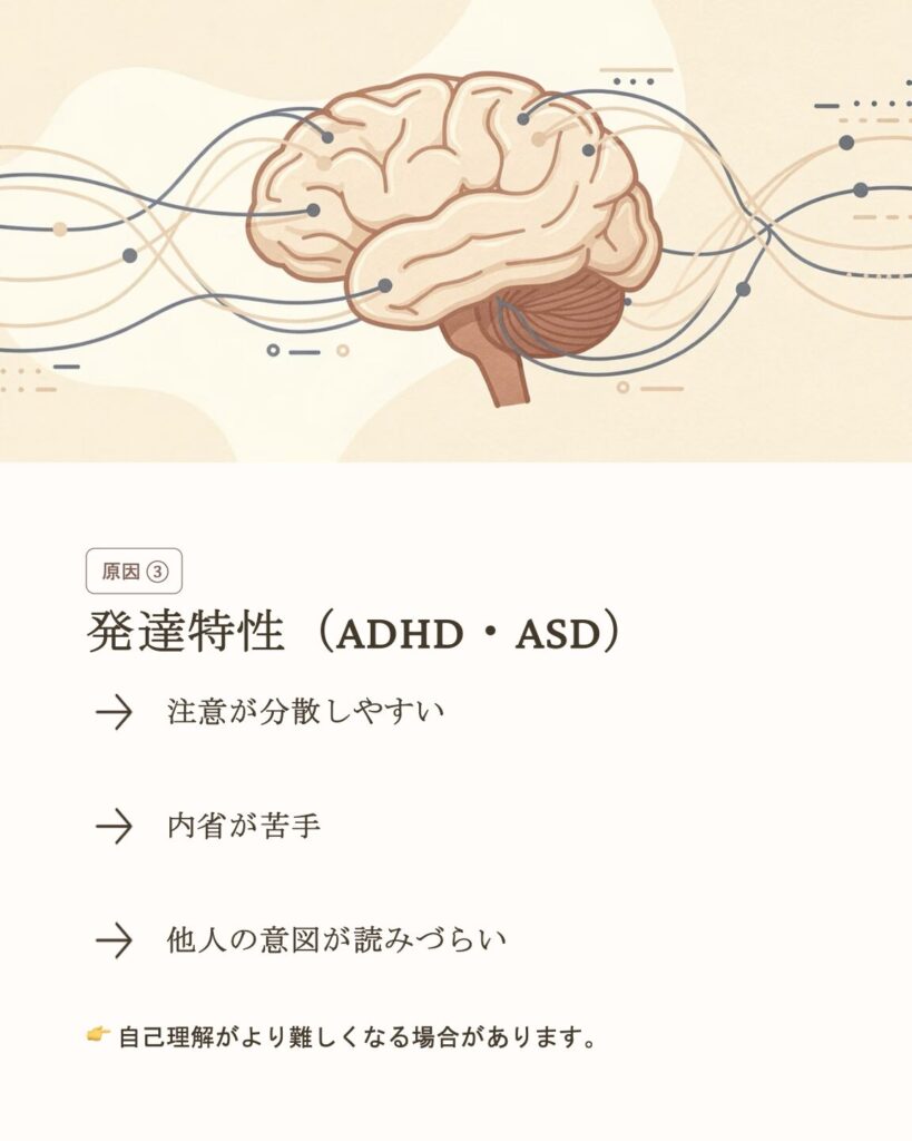 そしてこれは単なる性格ではなく、心理的・脳的な要因が関係していることが多いです。